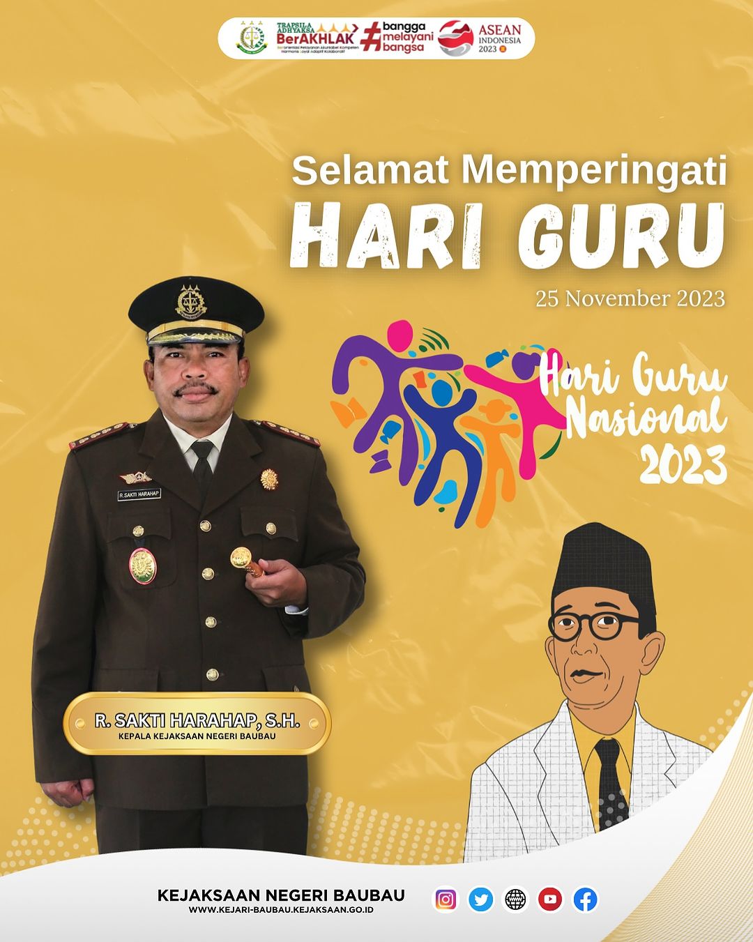 Kepala Kejaksaan Negeri Baubau R. Sakti Harahap, S.H. beserta jajaran mengucapkan :Selamat memperingati Hari Guru Nasional.“Bergerak Bersama Rayakan Merdeka Belajar”#KejaksaanRepublikIndonesia#KejatiSultra#KejaksaanNegeriBaubau