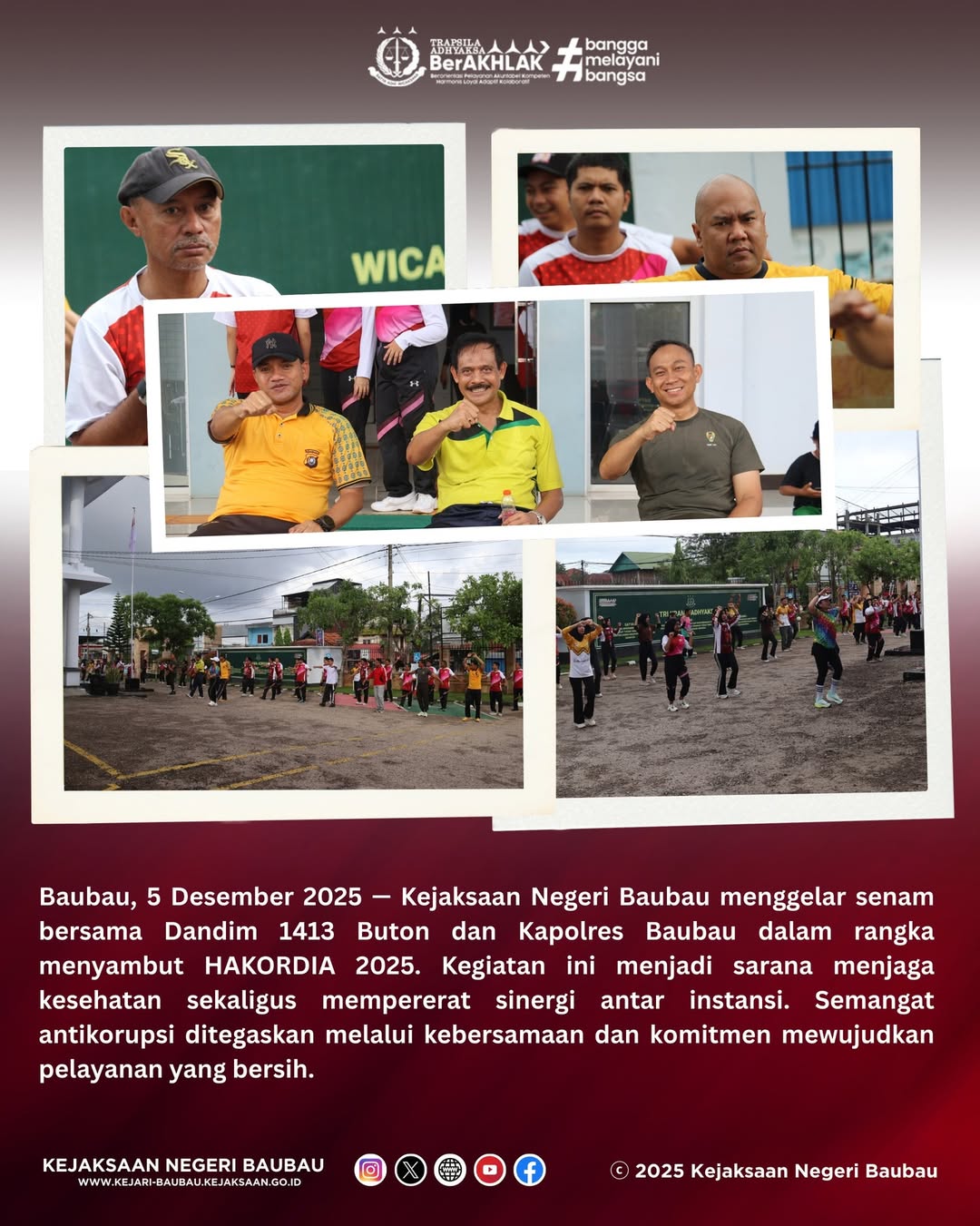 Kejari Baubau Gelar Senam Bersama Dandim 1413 Buton dan Kapolres Baubau dalam rangka menyambut HAKORDIA 2025