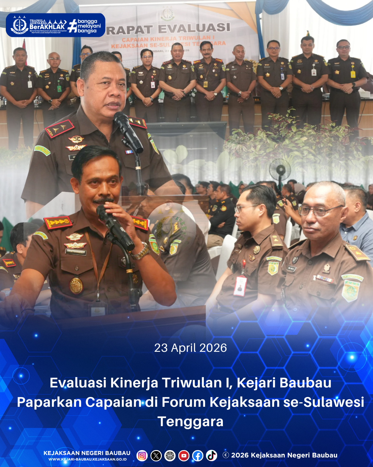 Kegiatan ini menjadi momentum untuk menilai capaian kinerja serta memperkuat koordinasi antar satuan kerja di lingkungan Kejaksaan. Dalam forum tersebut, Kejaksaan Negeri Baubau turut mempresentasikan paparan kinerja yang telah dilaksanakan selama triwulan pertama tahun 2026, serta upaya optimalisasi kinerja dalam mendukung penegakan hukum yang profesional, transparan, dan berintegritas.